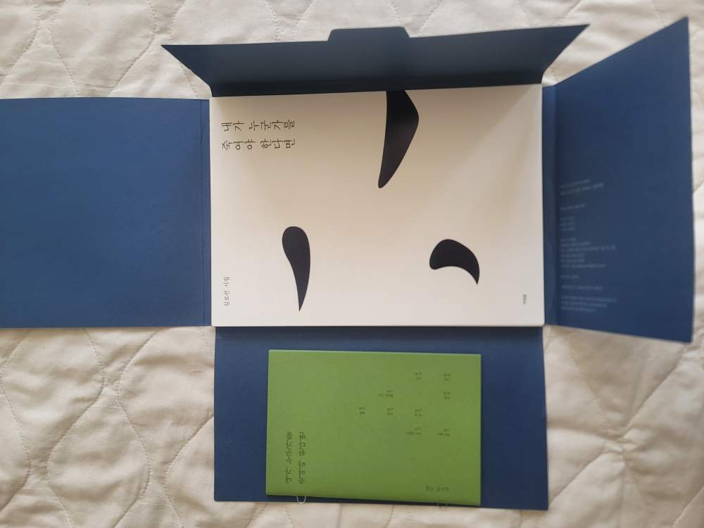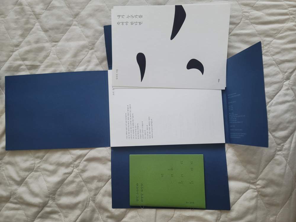 이번에 런던을 떠나기 전에 만날 사람이 있어 브라이튼에 다녀왔다. 반 년 정도 같이 일하다가 타지점으로 발령된 사람이었는데, 떠나기 전에 얼굴 한 번쯤 보기로 했다. 기차로는 왕복 2시간 반 정도 걸리는 거리인데 게임은 길게 안 하는 성격이고, 음악으로만 2시간을 채우기엔 음악도 오랫동안 듣는 성격이 아닌 나는, 이 시집을 들고 갔다. 내 나름대로 의미를 부여해서 흰 종이는 일회성 낭독회에 왔다는 기분으로 다 읽으면 한 편씩 버리고, 녹색 책자는 소장하기로 했다. 그냥 한 권의 책으로 판매해도 될 거를 굳이 패키징을 이렇게 해서 판매하는 데에는 이유가 다 있을 것이라 생각했다. 이 책을 사서 읽은 독자 중 몇 명은 나와 같은 선택을 했을지도 모르겠다.
